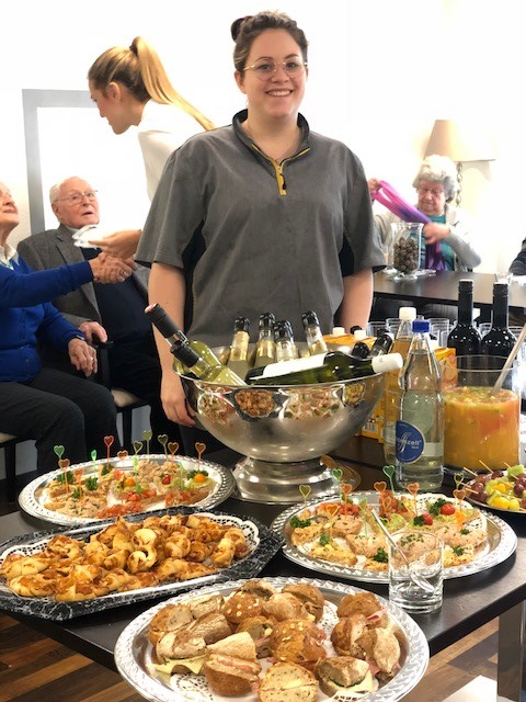 Einmal monatlich geniessen wir gemeinsam mit unseren Senioren einen Apéro. In dieser gemeinsamen Zeit, wird über alles Mögliche «geschwätzt». Wir haben viel zu lachen und geniessen die gemeinsame Zeit. Für die feinen Köstlichkeiten hat sich Ruth Hauser, Auszubildende Hauswirtschaft- 3. Lehrjahr in die Küche gestellt. Vielen Dank an dich Ruth!